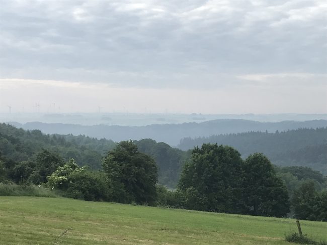 Heute Morgen war in Altenbeken (Übernachtungsort) strahlender Sonnenschein. Nachdem es gestern heftige Gewitter mit relativ wenig Regen gegeben hatte, war die Luft schön abgekühlt. Im Leopoldstal hing jedoch eine Dunstglocke, so das die Luft relativ schwül war. Auch die Wege waren durchnässt. Dies lies die Wanderung eine schweißtreibende Angelegenheit werden.